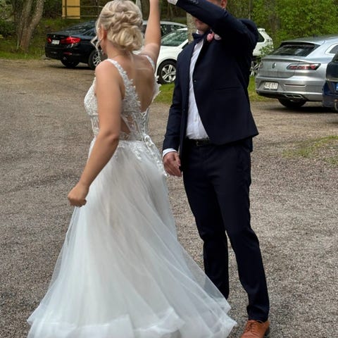 Kerran sovitettu häämekko, M-koko, imarteleva kropalle, ostettu häämessuilta 2021 pop-up bridal shopista