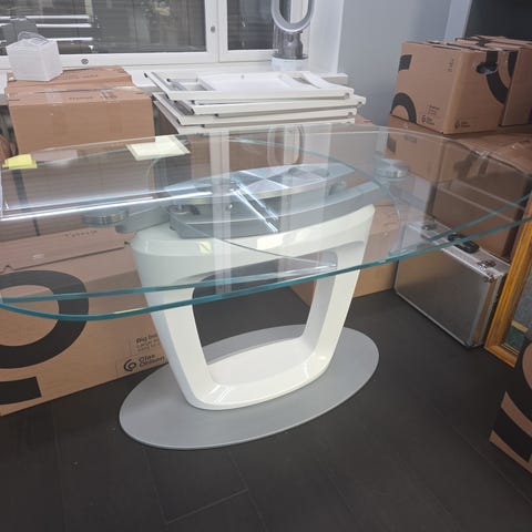 Näyttävä laatupöytä karkaistulla lasilla. ovh 1500e