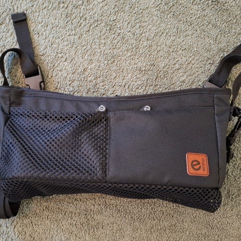 Kassikoukku / vaunukoukku esimerkiksi vaunujen työntöaisaan. Tarranauhat toimivat moitteetta ja koukun metallijousi vielä napakka.