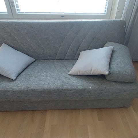 Käytetty sohva jonka voi levittää vuoteeksi ja nojatuoli, ehyet ja toimivat. Vain nouto.