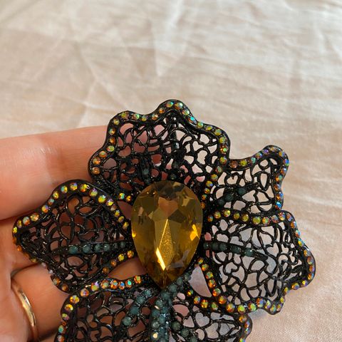 Myynnissä kuvanmukainen kullattu strassinen rintaneula höyhen/lehti.