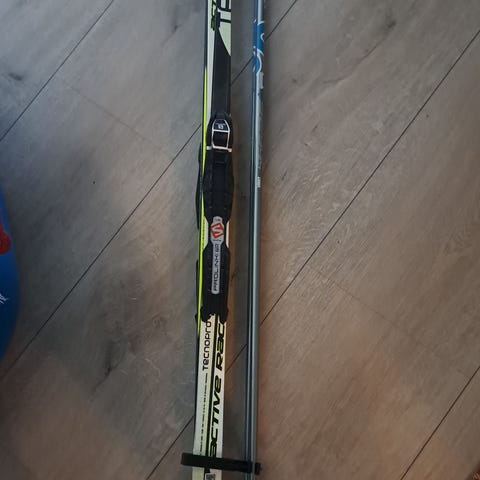 Peltosen kotimaiset sukset pituus 160cm. Sauvat pituus 140cm. Monot SNS siteillä, koko 39 1/3 ja 24,5cm.