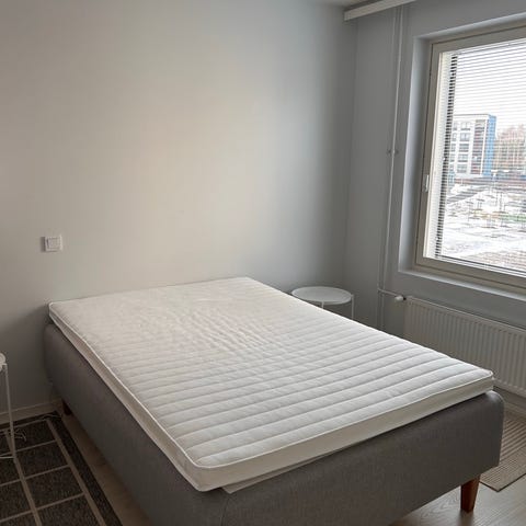 Ikea runkopatja skårer puolikiinteä, alle vuoden yöt nukuttu ja siistissä kunnossa (päällä ollut paksu petauspatja ja patjansuojus). Kuvasta poiketen erilaiset sängynjalat