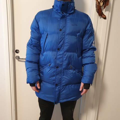 Miesten sini-musta-harmaa paksu toppatakki, jossa edessä useita taskuja, joissa sekä tarra-että vetoketjukiinnitys. Active by Cross-merkkinen. Pituus 80 cm. Kiristysmahdollisuus vyötärön kohdalla. Todella vähän pidetty.