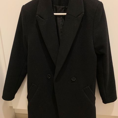 Tummansininen villakangastakki. Hyvässä kunnossa, koko XXS/32. Nouto Espoon Olarista tai postitus.
