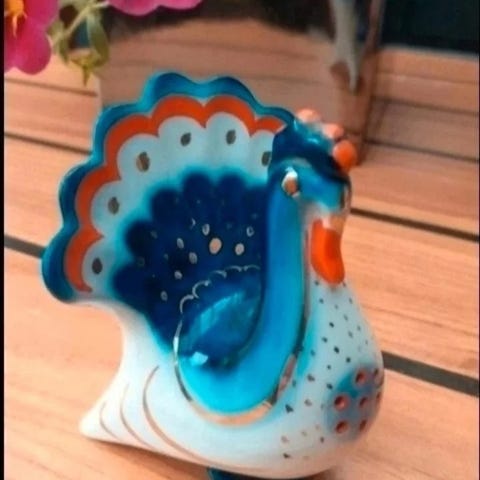 Myyntiin vitriinissä ollut Lomonosovin suolasirotin, kukko.