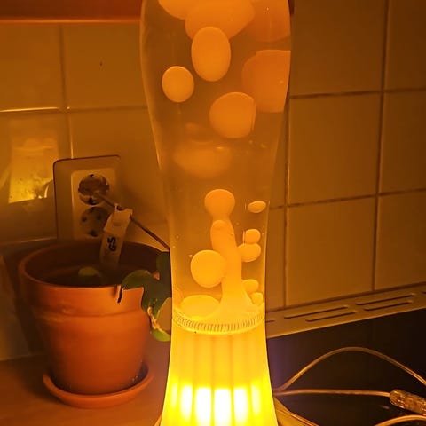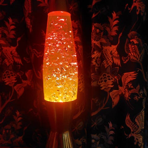 Mathmos Glitterbaby glitterilamppu / laavalamppu 1990-luvun lopulta. Mukana käyttöohjevihkonen.