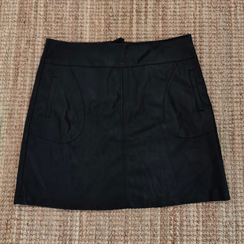 Tekonahkahame Seppälä Woman, koko L. Pituus 50cm, vyötärö n.95cm. Takana vetoketju ja halkio.