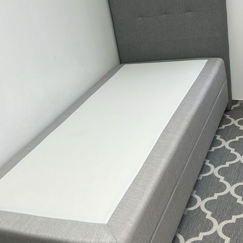 Väritys: jalat harmaa metalli, sängyn rungon ja patjan kangas musta, petari valkoinen.