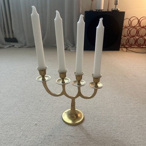 Messinkinen kynttilänjalka , Kork. 17.5 x n. 9 cm, koristeellinen.