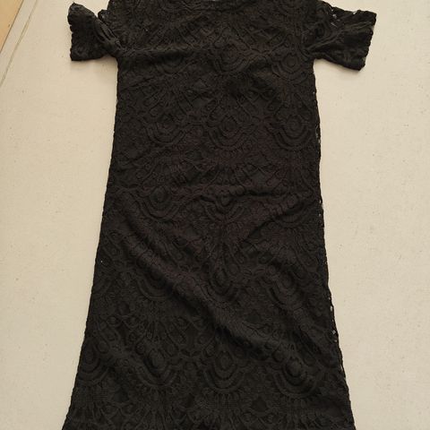 Myydään kuvien hihaton pikkumusta mekko, edessä pitsikoristelu, hame osa kellottuva, takavetoketju, ei vuoria, materiaali joustava 95 % polyesteri, 5 % elastaani, koko XXS.