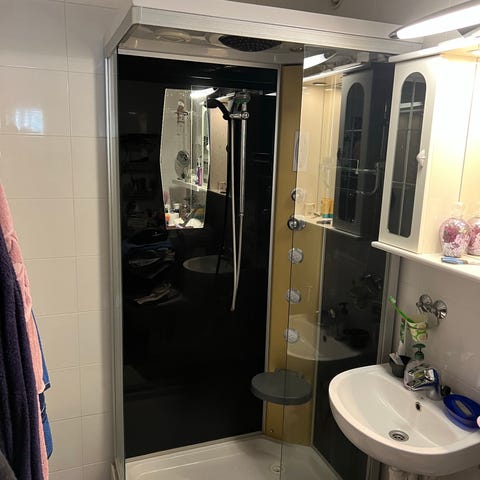 Alkuperäisessä paketissa oleva käyttämätön suihkukaappi.