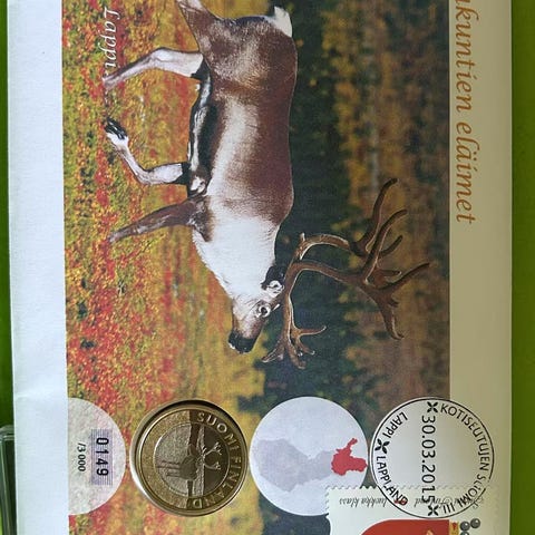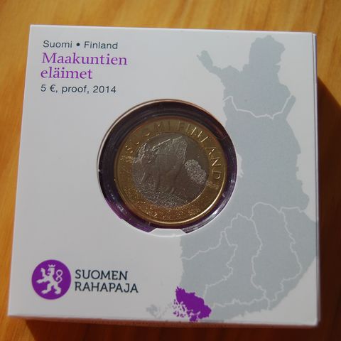 Suomi 2015 5 € Maakuntien eläimet Lappi, poro, UNC