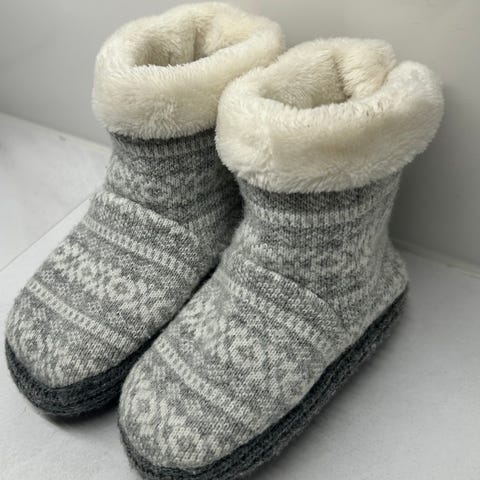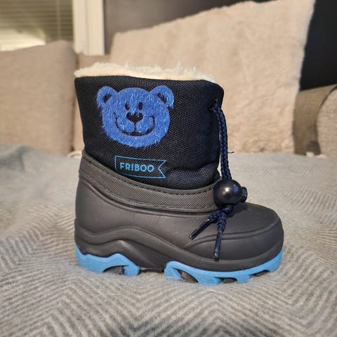 Ehjät ja lämpöiset tossut pienelle, kokoa 18/19. Tarrat päässeet kulumaan eivätkä meinaa pysyä kiinni, mutta korjausintoiselle tarranvaihtajalle passeli valinta :)
