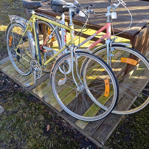 Huippukuntoinen vanha Peugeotin maantie pyörä suoraan ajoon! Renkaina hyväkuntoiset Continentalit. Shimanon hybridipolkimet ja Redin jousitettu satula, mukaan saa halutessaan myös toisen satulan. Rungon korkeus n.56cm. Soveltuu parhaiten yli 175cm pitkälle kuskille.