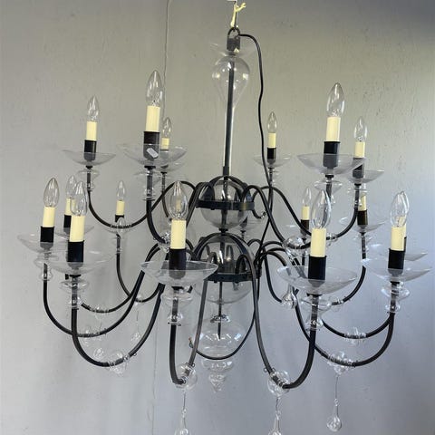 Nigel Coatesin suunnittelema näyttävä Ginetta by Grönlund kattokruunu. Materiaalina akryyli/kromattu teräs, korkeus 52cm ja halkaisija62cm. Ollut käytössä neljä vuotta, erittäin siisti kunto. Nykyään tätä tekee toinen valmistaja, uutena noin 500€.