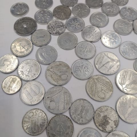 Läjä erillaisia kolikoita