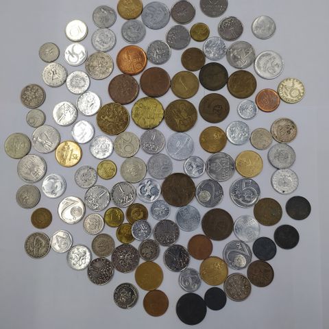 Läjä erillaisia kolikoita suojissaan.