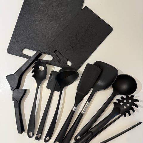 Käyttämätön muovinen setti vaikkapa retkelle.