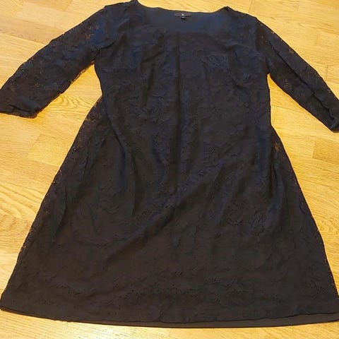 Hyväkuntoinen musta puuvillamekko. Jämäkkää, mutta joustavaa kangasta. Takana vetoketju. Kuvat haalistaa väriä, on oikeasti tasaisen musta.