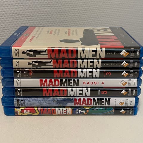 Kaksi ensimmäistä kautta ja vitoskausi tulevat tyylikkäissä pahvikansissa. Kaudet 6 ja 7.1 ovat arvaamattomia suomijulkaisuja.