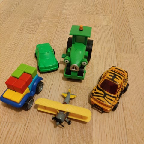 Siistikuntoisia leluautoja ja yksi moottoripyörä . Paristokäyttöisiä . Autoissa ja moottoripyörässä ääntä ja liikettä . Ovat jo useamman kymmenen vuotta vanhoja mutta vielä siistissä kunnossa. Hinta 5€/kpl. tai kaikki kerralla 15€ .