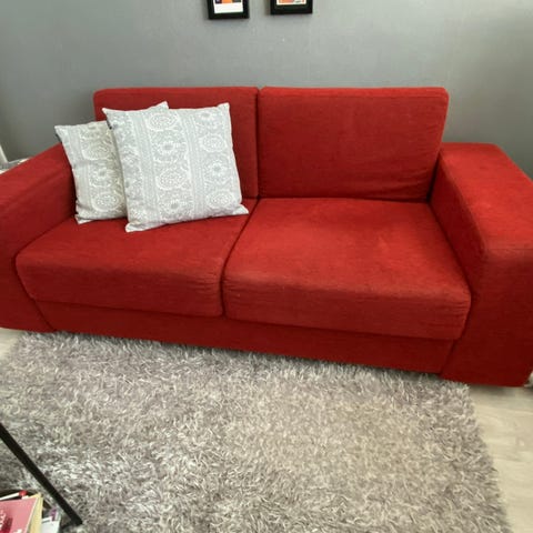 Sohva on jämäkkä ja siinä on hyvä istua, sekä nukkua.