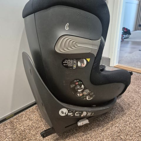 Selkä menosuuntaan päin asennettava Sirona Gi i-Size Plus -turvaistuin. Tässä Plus-versiossa on enemmän verkkokangasta, joten kangas on hengittävämpi. Hintaan sisältyy myös telakka.