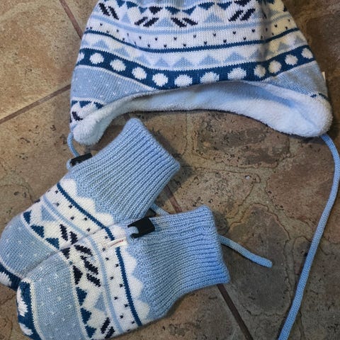 Vauvalle merino pipo koko 38/41 ja tumput. Sopivia syksyn/talveen.