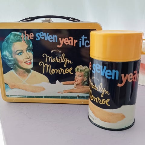 Marilyn Monroe -aiheinen makeispurkki, miksei kahvipurkkikin, kun tiiviste löytyy ja läpinäkyvä kansi. 1985 vuodelta. Kiinassa valmistettu. Purkissa lukee: The seven year itch, starring Marilyn Monroe and Tom Ewell. Eli Kesäleski elokuva kyseessä.