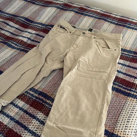 Erittäin hyväkuntoiset laadukkaat Boss Alabama 25836 farkut. Väri harmahtavan musta. Vyölenkit. Laadukas kangas, 50 % viskoosi, 30 % villa, 20 % polyester. Vesipesu sallittu. Kokomerkintä W35 L34. Vyötärö 90 cm, haara-lahje 86 cm. Sopii varmaan myös naisten käyttöön.