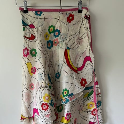 Kauniisti laskeutuva nilkkapituinen kokonaan aukeava kietaisuhame, vyötäröllä on useita vaihtoehtoja kiinnittää nappi, joten vyötärössä joustovaraa. Sopii niin juhlaan kuin arkeen. Kannattaa katsoa myös muut ilmoitukseni ja tehdä löytöjä samoilla postikuluilla.