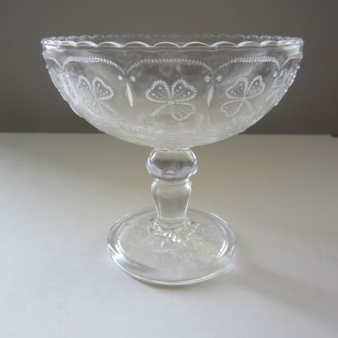 Materiaali: kirkas puristelasi, kohokuvioinen apilakoriste