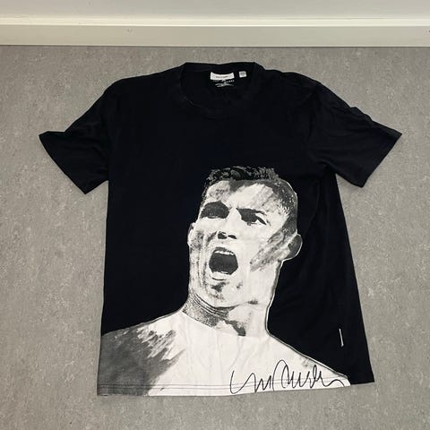 Myydään kuvassa näkyvä käytetty t.sininen/harmaa Cristiano Ronaldo yöasusetti koko:L. Sisältää kuvassa näkyvät housut+paita. Housuissa taskujen lähellä näkyvissä reikiä näkyy kuvissa ja ei ole uusi. Hinta:35€