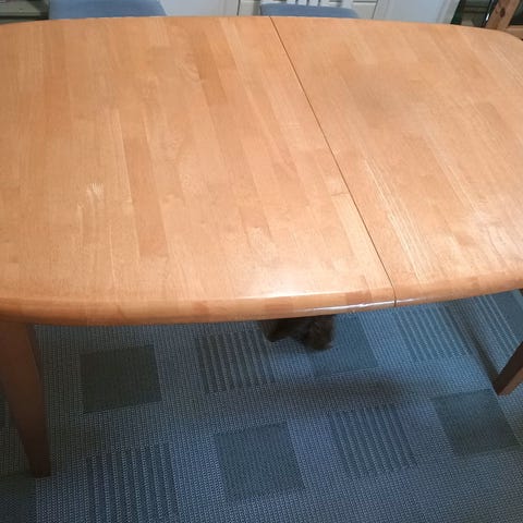 Korkeakiiltoinen pöytä kolhu yhdessä kulmassa pieniä käytön jälkiä pöydän pinnassa. Tee tarjous !