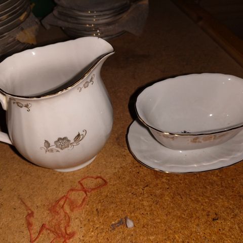 Muutaman kerran käytetty astiasto. Sisältää: