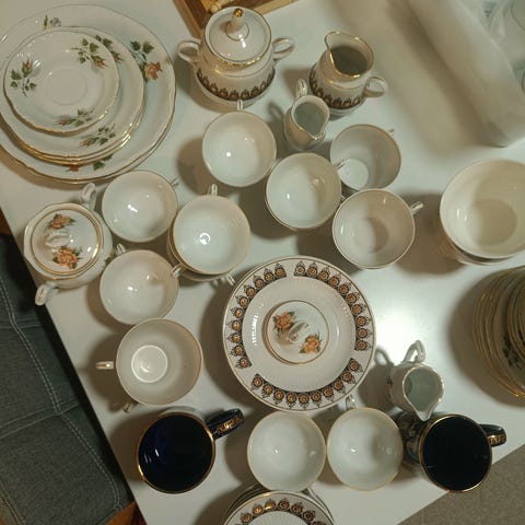 Myydään koko astiasto yhdessä tai astioita voi ostaa myös erikseen. Mieluiten nouto, postituksesta voidaan sopia erikseen.