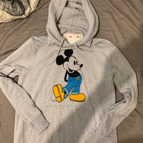 Myydään Levi's -merkkinen miesten farkkutakki, Mikki Hiiri -painatuksella