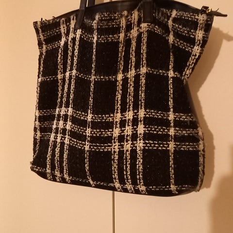 Musta laukku vetoketjulla ja soljella. Säädettävä hihna.