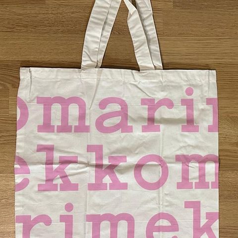 Marimekko logokassi, vaaleapinkin kirjaimet