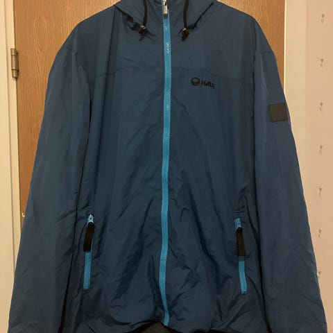 Kauniin turkoosi ulkoilutakki, vuorilla. Toisesta taskusta vetoketju rikki. Firman nimi taskussa, aika näkymätön. Nämä otettu huomioon hinnassa.