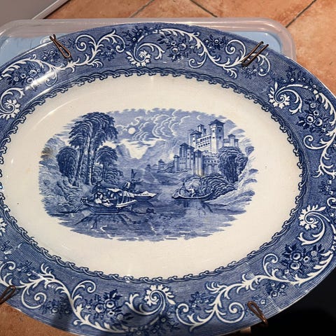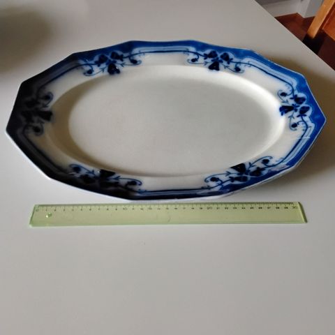 Itämaistyylinen antiikkinen iso vati. Koko 49 x 39 x n 5cm. Brittiläistä posliinia, ironstone china patent no 75, 3/1484.