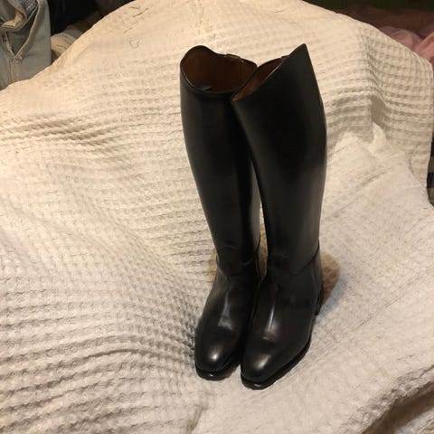 Myydään vuosia käytössä olleet mittatilaussaappaat, jotka eivät enää sovi ratsastajalle. Saappaat huippulaadukkaat Köningsin mittatilaussaappaat lakerisella varrella ja timanttiyksityiskohdilla. Käytön jälkiä etenkin saappaiden sisäpinnoilla ja nilkan tikkausten kohdalla (otan mielelläni lisäkuvia). Vetoketjut uusittu pariin kertaan vuosien varrella. Tällä hetkellä toisen saappaasta vetoketju takkuilee, voin korjata tämän vielä ennen myyntiä.