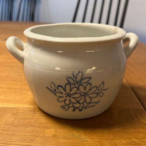 Hyväkuntoinen, ei lohkeamia, kolhuja ym. Korkeus 8,5 cm ja halkaisija 11 cm.