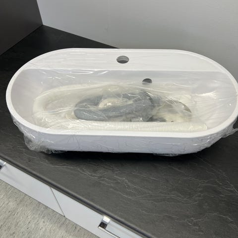 Jojo mini 390x600x15mm valkoinen valumarmoriallastaso, kestävällä evermite-pinnoitteella. Vesilukkosarja sisältyy. Allas on uusi ja käyttämätön, oikeassa etukulmassa hyvin huomaamaton viimeistelyvirhe pinnoitteen alla (ei vaikuta altaan käyttöön). Allas voidaan asentaa 360-370mm syvän ja 600mm leveän rungon päälle tai upottaa tasoon. Altaan normaali hinta noin 240 euroa.