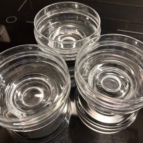 Tarjolla 6+1 varakappale jälkiruokakulhoja. Halkaisija 9,5 cm, korkeus 5,5 cm. Vain nouto