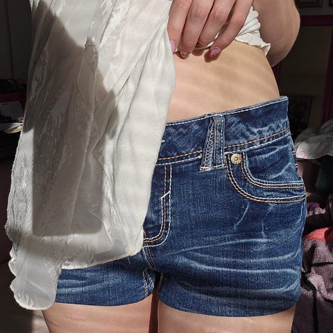 ihana y2k henkinen farkkuhame, vyötärö yksi sivu 36cm, itse vähän kavennettu, näkyy kuvassa. koko S, pituus n. 53cm. muuten melkein pitämätön. katsothan muutkin tuotteeni :)