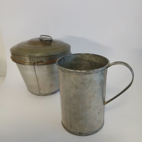 Vanha Vintage Teräksinen mittasetti 5-osaa.
