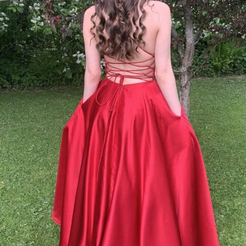 Ihana vaalean persikan/aprikoosin värinen vanhojentanssimekko. Selässä nyörikiinnitys. Kerran tanssittu, säilytetty pukupussissa. Ollut käytössä XS-S kokoisella noin 160cm pitkällä. Tanssittu ballerinoilla.
