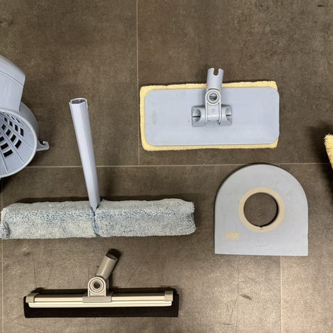 Mukaan tulee erikseen ostetut, kerran käytetyt Sini -ikkunanpesuliinat.